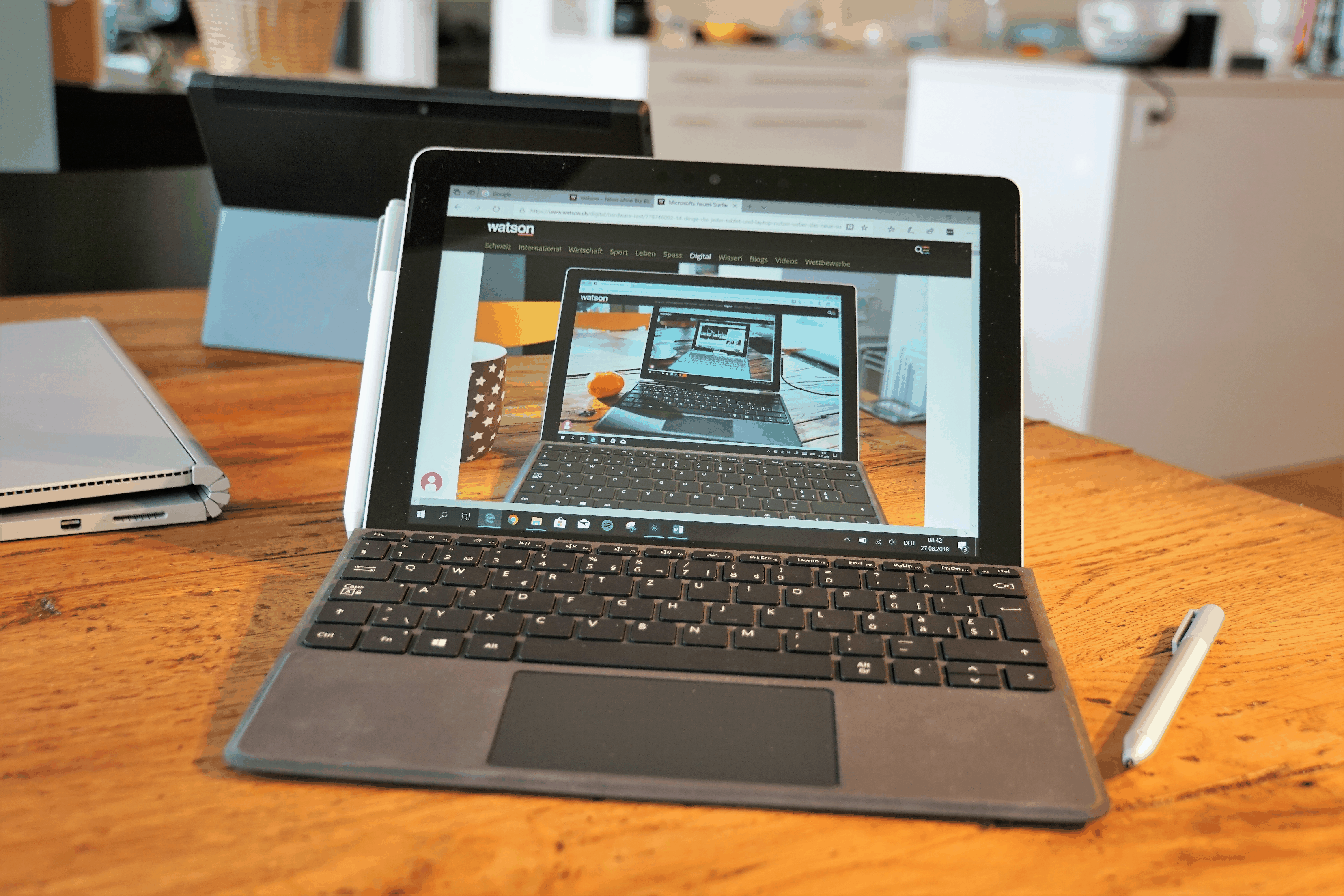 Einem pc notebook convertible oder tablet gueltig. Ein premium tablet mit tastatur. Mit stift und tastatur.